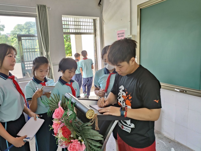 2022年6月24日上午,阳光明媚,微风和煦。坦洲镇联一小学迎来了优秀学子黄丽茹回母校“探亲”。