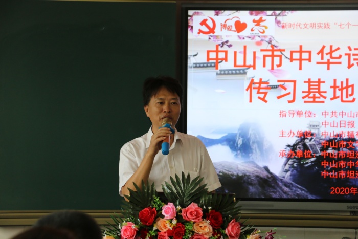 中山市中华诗词楹联学会主席高松先生、坦洲镇文学协会会长方伟华先生、坦洲镇文学协会副会长唐云光先生、郑豪情先生、王宏先生和联一小学全体行政及语文教师参加此次活动。
