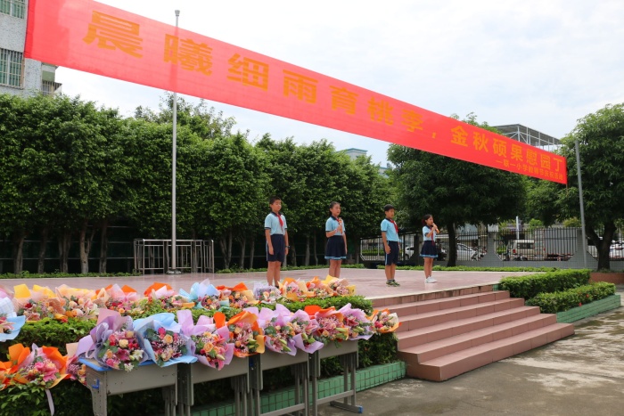看,五(2)班许璐瑶等同学的声情并茂的诗歌朗诵,深深的表达了对老师的感恩之情。随后各班学生代表上台给老师们献上一束鲜花,花美人美心更美,标准的队礼,小小的举动,以表达对老师们最美好的祝福。