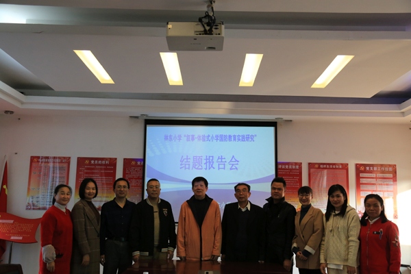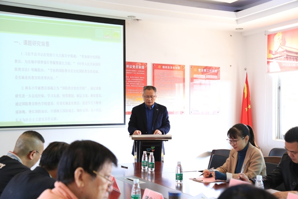 领导专家们首先观看了林东小学开展国防教育、国防技能训练和国防研学活动的视频,随后,吴维雄校长作结题报告。吴校长从课题研究背景、研究目标、研究内容、研究方法、主要举措、研究成果、存在不足和工作设想等方面,详细汇报了学校在国防教育中所做工作、取得成效及改进措施。吴校长对上级领导专家长期关心支持学校教育科研表示衷心感谢,相信在专家们的引领下,学校的教育教学工作一定能再上新台阶。