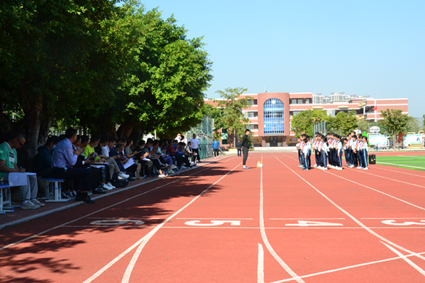在七村小学陈子兵校长的带领下,六盘水市领导和老师们参观了校园,学校的校容校貌整洁优美,足球文化气息浓厚,学生活泼有礼,这些都令来宾们赞叹不已。接着,学校足球专职教师朱振海为大家展示了一节常规足球课——《脚背外侧运球》。朱振海老师是我校校园足球发展的教学骨干,是广东省校园足球C级(精英)教练员,多次带队参加市镇比赛取得优异成绩。这节足球课以训练运球动作为主,采用游戏体验式教学,将指导与练习有机结合,激发了学生对足球运动的学习兴趣。孩子们踏着自信的步伐,快速整齐地在足球场集合,昂头、挺胸、收腹、目视前方,足球训练开始了!孩子们在朱老师的引导下合作探究,遵守足球教学规则,掌握了脚背外侧运球的技巧。朱老师扎实的教学功底和幽默风趣的教学风格,得到了来宾们的肯定,他们纷纷在旁鼓掌,竖起大拇指。