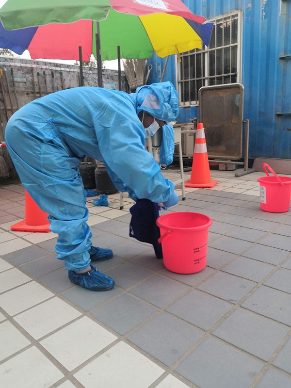 应急返校演练结束后,保洁阿姨开始演示诺如病毒呕吐物处理实战操作,保证老师们都能了解和学会如何正确处理呕吐物。近期是诺如病毒的高发期,不少地区和学校都相继出现学生呕吐的情况,而预防诺如病毒扩散的有效方法便是正确处理学生的呕吐物和做好隔离。因此,学校对所有清洁阿姨进行呕吐物处理的培训,确保所有清洁阿姨能做到正确的防护和清洁消毒。本次培训演示由保洁阿姨配合完成,全体老师观摩学习,这样能更直观地感受整个处置过程。最后,李宝仪还对演示过程的重点进行强调,如:呕吐物消毒液的浓度、呕吐物怎么处理、环境消毒液的浓度等。演示结束后,林主任对本次演练进行简单的总结,并对本次演练的效果作出肯定。