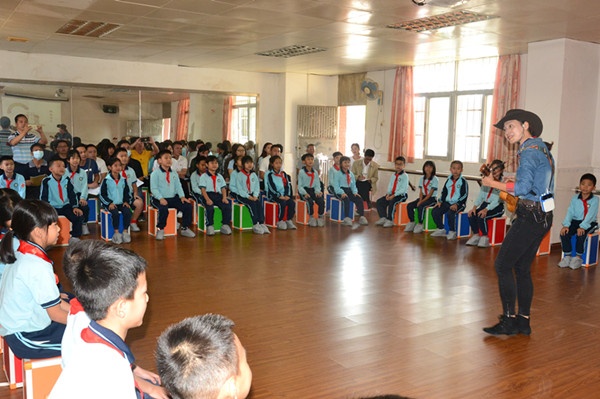 九点十分,听课活动正式开始。首先是由语文教师李浩洁执教课例《麻雀》。李老师以图片导入,激发学生的学习兴趣,通过带着问题读、小组读、加上动作读等多种形式,引导学生在读中悟,在悟中读,做到了学生是学习的主体,教师是学生学习的主导者。紧接着,音乐老师李丽莎执教《噢,苏珊娜》。李老师通过精心打扮自己,以一身美国西部牛仔的着装导入新课,成功点燃了学生和听课老师的热情,整个教学环节紧凑,层层递进,深深打动了在座的学生和听课老师。