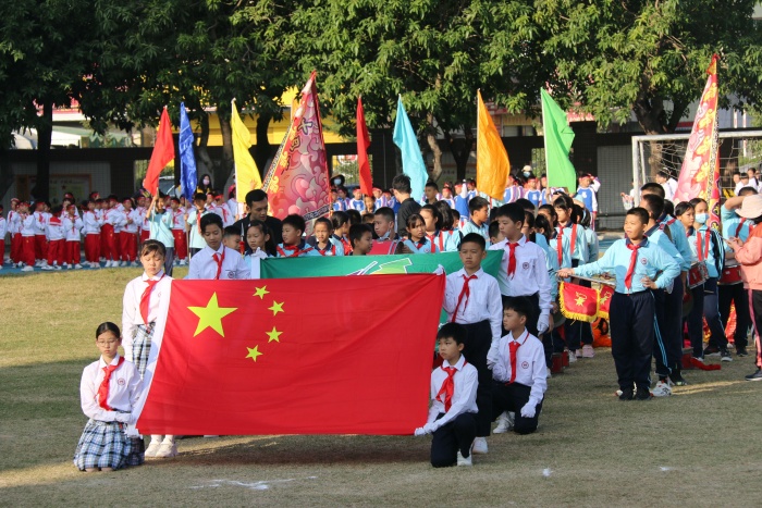 朗朗秋阳,习习金风。11月18日,坦洲镇十四村小学“童心向党,乐享运动”为主题的第八届体育节暨第23届田径运动会如约而至。全校师生和家长志愿者近七百人参加校运会,14个班级全部参加入场式展示和各项比赛角逐。孩子们在运动会的舞台上尽享校园运动之乐,用矫健的身姿、健康的体魄、顽强的意志,向党报告:请党放心,强国有我!