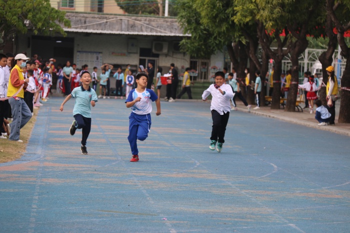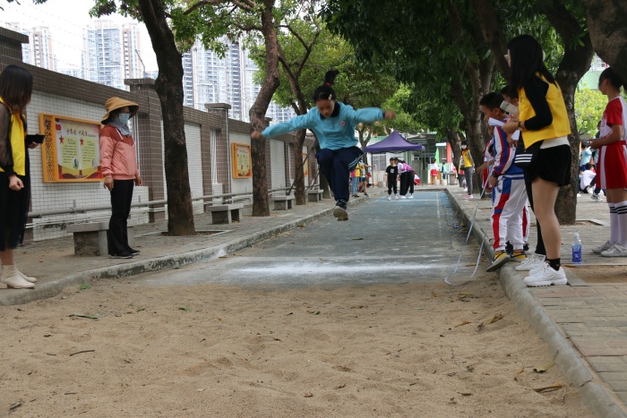 比赛高潮出现在下午的男子和女子4×100米接力赛上,随着发令员的一声枪响,运动员们英姿勃发,鼓足干劲往前跑。瞧,“小苏炳添”们紧握着拳头,憋红的小脸。运动员们有一个共同的目标:为班级争光。赛场下,啦啦队们为队员呐喊助威,欢呼声,喝彩声,鼓掌声不绝于耳。接着,进行的是体育节小项目考核:立定跳远和25米往返跑。学生们自信倍增,意气风发,奋力奔跑。