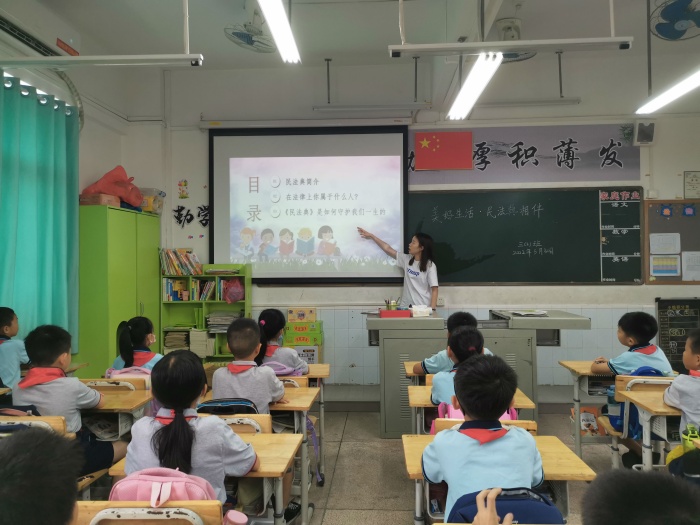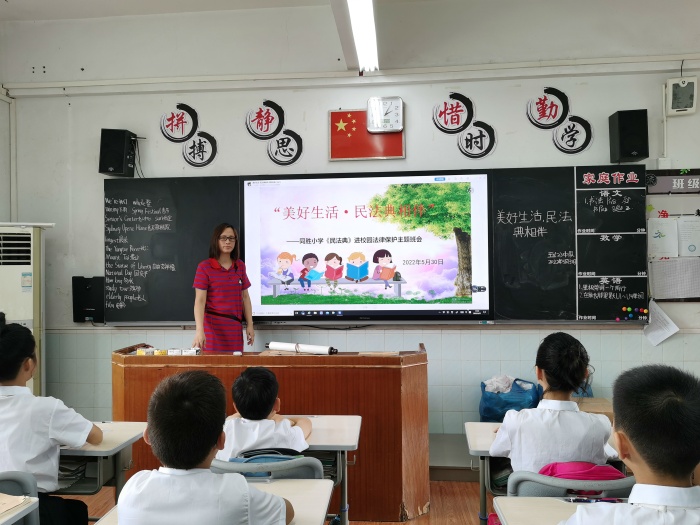 2022年5月是《中华人民共和国民法典》施行以来的第二个“民法典宣传月”,为切实加强《民法典》的学习宣传教育,引导学生树立尊法、学法、守法、用法的意识,坦洲镇同胜小学开展了“美好生活·民法典相伴”为主题的《民法典》进校园系列宣讲活动。