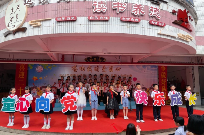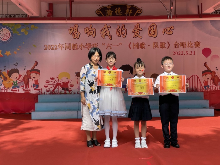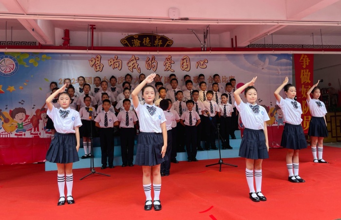 5月31日下午,坦洲镇同胜小学举行了以“唱响我的爱国心”为主题的《国歌·队歌》合唱比赛。