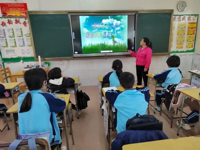 4月2日,各班有序开展缅怀先烈的主题班会。学生们在班主任的教育下学习清明节的风俗活动,并倡导文明祭扫,接着回顾邱少云、董存瑞、刘胡兰等先人伟大的事迹,学生们追随先人的足迹细细品悟他们身上舍己为人、无私奉献的精神,最后学生们郑重宣誓:缅怀革命先烈,继承革命遗志。