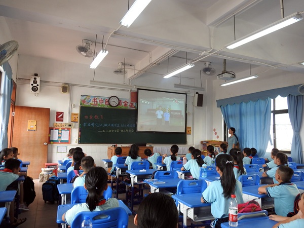 开学典礼结束以后,各班学生回到课室开展主题为“四爱教育:学文明礼仪,做文明学生,创文明校园一一安全第一课主题班会”。各班班主任组织同学们观看了由广东省教育厅、广东省公安厅交通管理局等联合录制的交通安全教育视频“看不见的危险”。从孩子开学的第一天,就像孩子敲醒交通安全的警钟,让孩子们开开心心到校来,安安全全回家去。