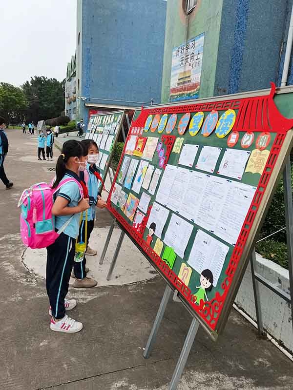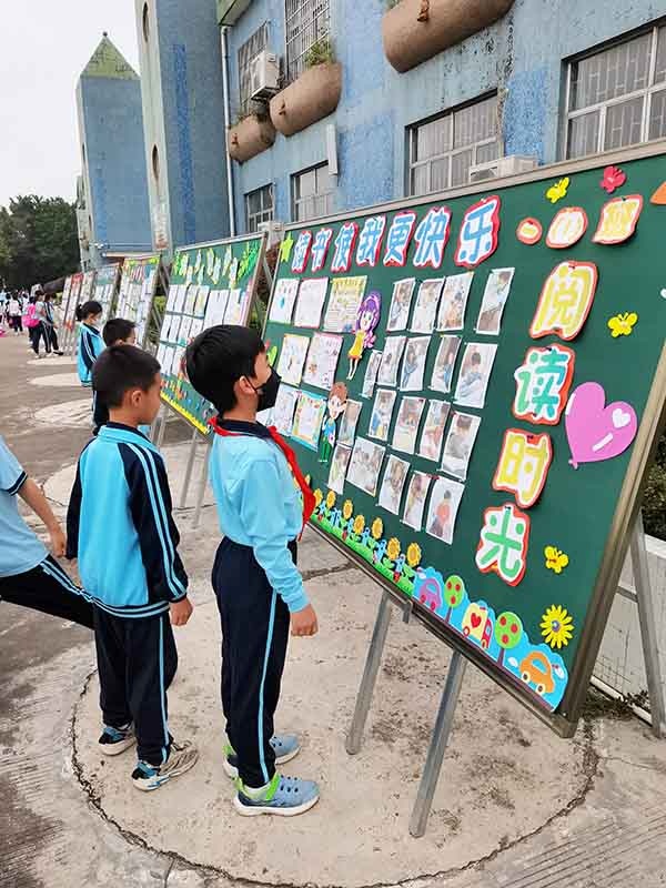 本次活动,每个班级均结合已经开展的21天阅读挑战活动,倡议学生走进图书馆,开展班级读书漂流活动、开展亲子共读活动、师生齐读一本书活动,鼓励学生多向周围的同学和老师推荐好书,每班都评选出班级“读书小明星”。语文老师和同学们精心设计班级展板,展现班级的读书氛围与成果,让整个校园书香四溢。