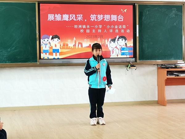为了激励同学们爱国、奋发、勤学、向上的精神,倡导建设和谐校园,丰富校园文化生活,发掘、培养优秀的校园小主持人,2023年2月16日下午,坦洲镇永一小学举行“小小金话筒”校园主持人评选活动。