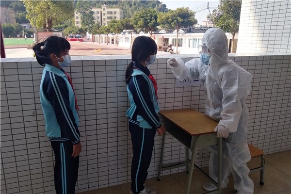 万事俱备,演练终于开始了!演练以“医院发现经集中隔离后无不适返校的学生,为新冠病毒核酸初筛阳性”为假想疫情拉开帷幕。在医院把结果反馈到学校后,裕洲小学疫情防控应急工作小组立即启动了应急处置方案,配合相关部门,开展调查和现场处置,迅速组织学生进行核酸检测,协助专职消毒人员对学校进行终末消毒。