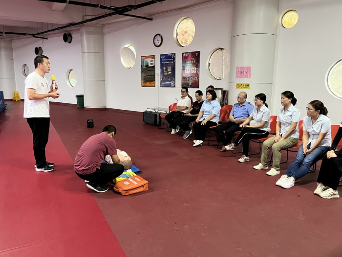 为进一步加强市属体育场馆安全管理,提高场馆工作人员的安全意识和应急处置能力,我中心各体育场馆定期开展救生技能培训,包括AED自动体外除颤仪培训、心肺复苏训练、急救知识学习等,确保每一位场馆工作人员熟练掌握救生技能,提高安全防范意识,保障广大群众参与运动健身活动的安全。