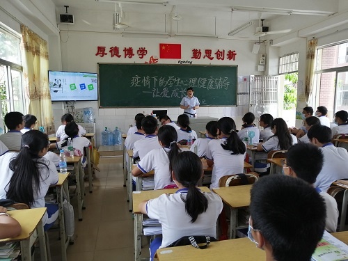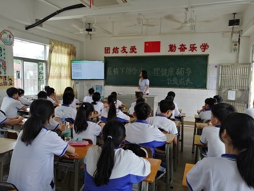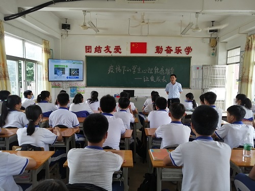 为了加强疫情期间学生心理健康辅导工作,提高学生防控意识,引导学生以积极心态面对疫情,学会如何在疫情状态下保护好自己和家人,2020年5月25日下午,桂南学校中学部开展了以“疫情下的学生心理健康辅导——让爱成长”为主题的心理健康班会课。