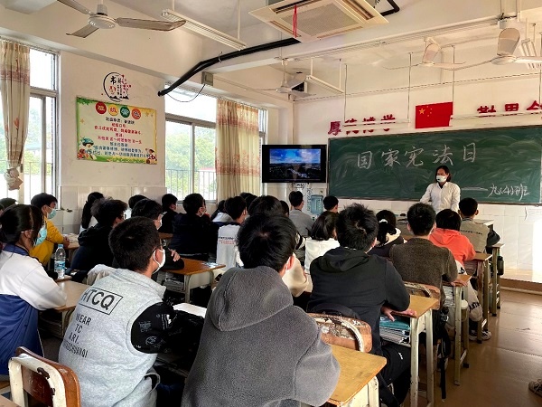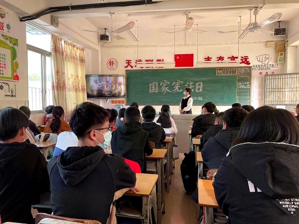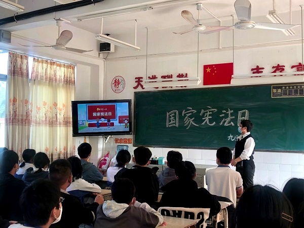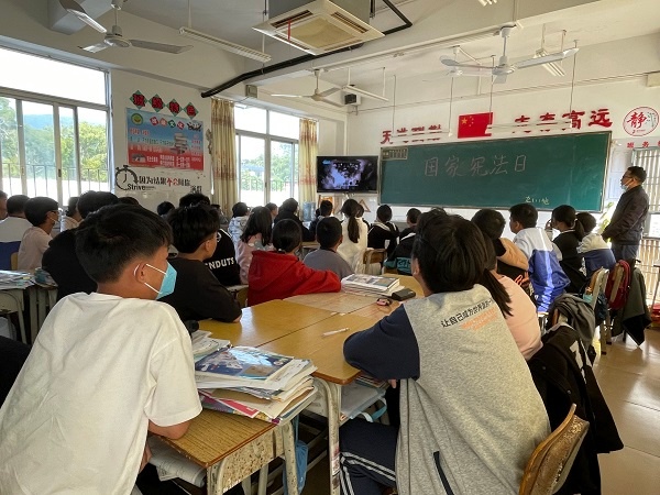 2022年12月4日是第九个“国家宪法日”,也是我国现行宪法公布施行四十周年。为进一步弘扬宪法精神,维护宪法权威,在全校营造人人学习宪法、遵守宪法、维护宪法的良好氛围,树立学生学法、知法、懂法、守法的意识,12月12日桂南学校以“学习、宣传和贯彻党的二十大精神,推动全面贯彻实施宪法”为主题,围绕习近平法治思想、宪法及民法典等重点内容,组织开展了“国家宪法日”的主题班会活动。