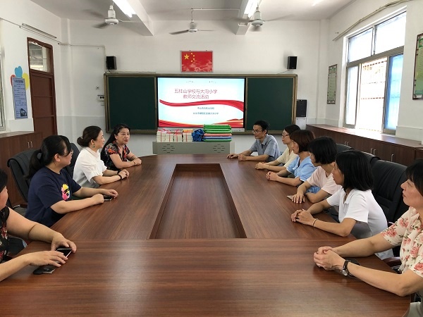 捐赠仪式结束后,双方行政及教师代表就下学期帮扶工作展开深入交流,对进一步落实帮扶计划达成了共识,明确了帮扶共建的措施和目标,确保结对帮扶工作的顺利开展。针对下一步的帮扶工作,李萌校长说:“五桂山学校将持续贯彻落实省教育厅精神,从实际出发依据学校资源优势,今后拟在学科管理水平、其它学科教育教学、业务素质、办学条件等方面加大帮扶力度,选派优秀党员干部前往大沟小学开展形式多样的帮扶活动,邀请大沟小学的行政老师到五桂山学校交流学习,全面落实帮扶任务。”