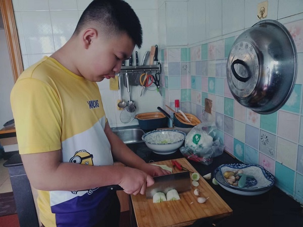 四至六年级开展了“我为家人做顿饭”活动。队员们在爸爸妈妈的引导下,有模有样地摘菜、炒菜、包饺子……队员们通过做饭,不但解锁了新的生活小技能,还提高了动手能力,体验了劳动的快乐。