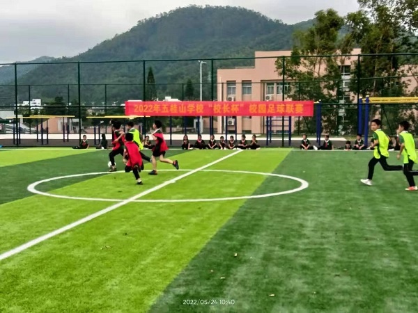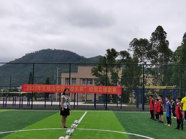 为全面提高我校学生的体质和体能,培养学生拼搏意识和团队精神, 进一步普及和推广校园足球,擦亮全国足球特色学校的牌子。5月24日上午,五桂山学校在新落成的足球场举行了2022年 “校长杯”校园足球联赛开球仪式。