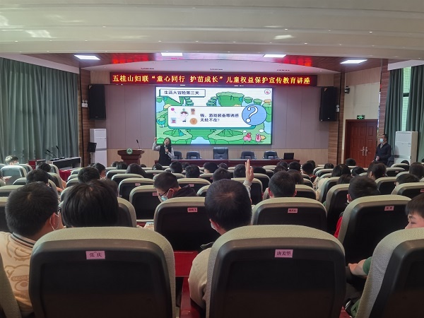 继上学期主题为“女童安全 护卫行动”儿童防性侵知识讲座后,为进一步普及、提高少年儿童的防范意识,保护少年儿童远离性侵害,2月25日下午,五桂山街道妇联邀请高级性教育讲师楼伟静女士,为五桂山学校学生作题为《认识自己 保护自己》的儿童防性侵知识讲座。讲座在五桂山学校综合报告厅进行,按防疫要求,五桂山学校六年级98名男女学生现场参加讲座。