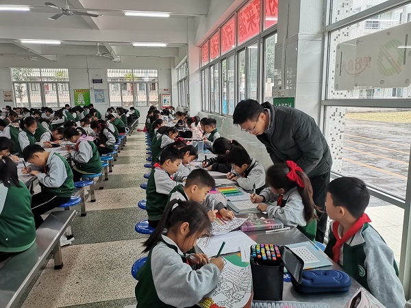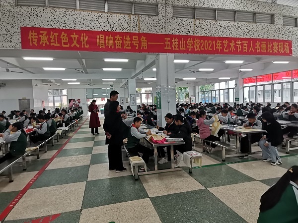 为了加强校园文化建设,丰富同学们的课余文化生活,培养学生写规范字的习惯,发掘学生的绘画潜能,提高学生的审美和鉴赏能力,12月21日,五桂山学校举办了以“传承红色文化,唱响奋进号角”为主题校园艺术节书画比赛。近300学生现场进行软笔书法、硬笔书法和绘画比赛。