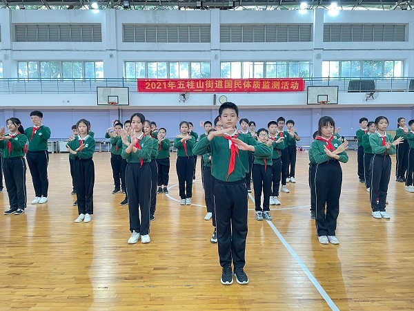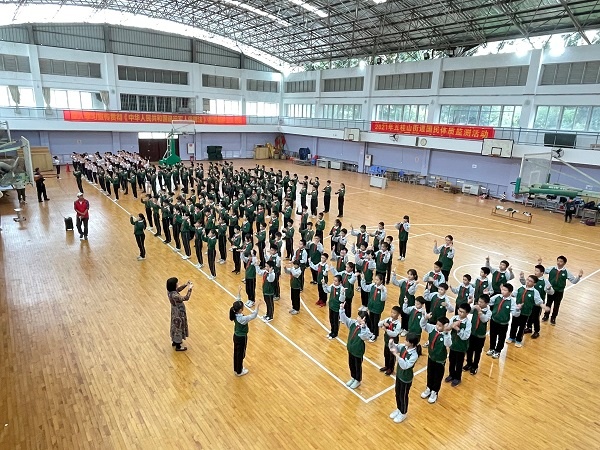为促进良好班级风貌,形成健康向上、积极进取的学习风气,彰显校园文化特色,11月19日,五桂山学校利用大课间的时间,在体育馆举办六年级《听我说 谢谢你》手语操比赛。六年级5个班级全体学生参加此次活动,德育处黄学富主任、各年级组长,大队辅导员魏其标老师担任此次比赛的评委。