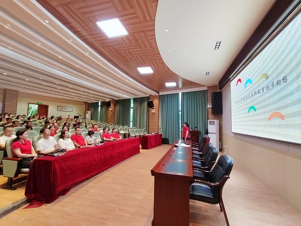 为进一步凸显学校的办学特色与品牌,2022年6月15日下午,五桂山学校在综合报告厅召开专题会议,研讨以“五色”教育为主要载体和抓手,开展学校品牌特色课程。研讨会由李萌校长主讲,全体教师参加会议。