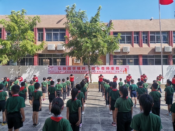 尊师明礼、知恩报恩是中华传统美德。为进一步落实五桂山学校五色教育之金色优秀中华传统文化教育,五桂山学校小学部以教师节为契机,于9月7日上午举行了以"弘扬国学精粹,倡导尊师重教"为主题的"谢师礼"仪式。