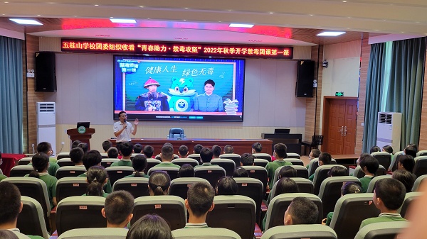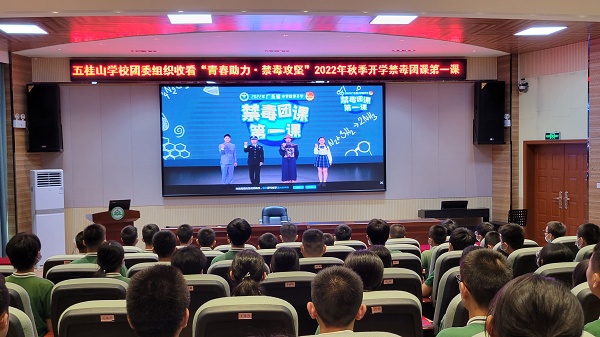 为深入贯彻落实习近平总书记关于禁毒工作的重要指示精神,进一步提升青少年识毒防毒拒毒意识和能力,促进广大青少年健康成长。2022年9月1日,学校团委组织全体团员、八年级师生在学校报告厅收看了“青春助力 禁毒攻坚”2022年广东省中学秋季开学禁毒团课第一课。