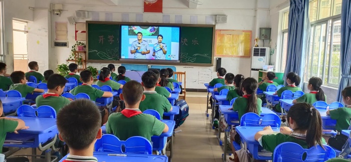 升旗仪式结束后,各班在分发课本等学习资料后,立即按课表进入正常的学习,班主任组织学生收看《开学第一课》,校园里顿时书声琅琅,恢复了往日书香之气。课间活动正常,午餐、午休秩序良好,校园到处充满孩子天真无邪的银铃般的笑声。