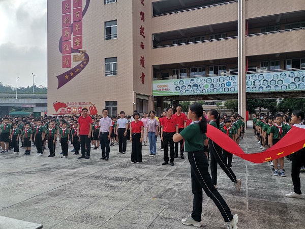 在参加了庄严的升旗仪式后,陈校长一行参观五桂山学校校园,实地考察了五桂山学校的校容校貌。随后,召开座谈会。五桂山学校蓝青林副校长从课堂教学、德育经验、学校办学理念、硬件设施建设、校园文化建设等方面,向对方介绍学校情况,重点介绍了学校取得成绩与办学特色。座谈会上,双方学校行政还就党建工作、教育教学质量提升等方面进行了交流。