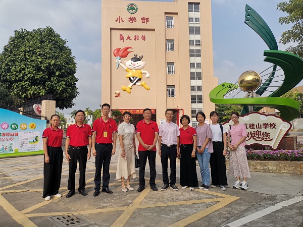 汕头市潮阳区金浦街道大沟小学是五桂山学校“世行贷款学校对口帮扶项目”的受援学校。9月26日,大沟小学校长陈春和与郑楚真、郑宝銮、郑利旋、郑少银老师一行五人来到五桂山学校开展了为期一天的学习交流。五桂山学校党支部副书记陈玉玲、蓝青林副校长等学校行政对陈春和校长一行表示热烈欢迎,并周密安排了一天的学习交流的内容。