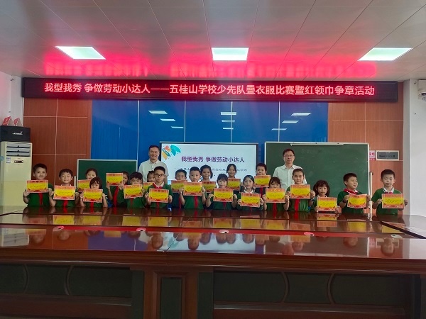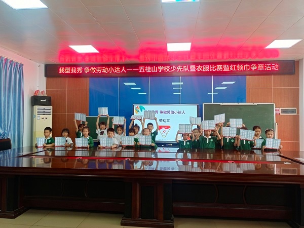为进一步贯彻落实《关于全面加强新时代大中小学劳动教育的意见》文件精神,加强新时代劳动教育,指引学生树立正确的劳动观,提高学生的劳动技能,2023年5月5日,少先队中山市五桂山学校大队委组织开展了叠衣服比赛暨红领巾劳动章争章活动。本次叠衣服比赛,一二年级10个中队分别选派4名选手参赛。活动由少先队大队辅导员姚敏凤老师主持,德育主任、年级组长担任评委。