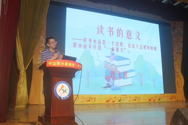 讲座之后,曾飞虎老师给大家解读了《小榄镇第一中学第十二届师生读书月活动方案》,包括活动口号、活动时间与形式、活动内容等。