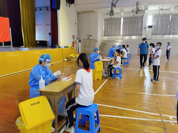 经过全体师生员工与医务人员的齐心努力,小榄一中1600余名师生的核酸检测工作,不到两个小时就顺利完成。