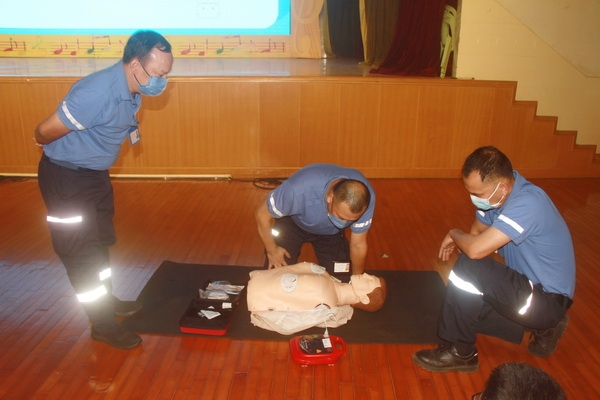 活动中,罗炜治老师给大家宣讲了安全游泳的常识,通过实例和视频介绍了日常生活中容易发生的溺水情况及溺水时自救互救的正确方式,教育学生不要私自或结伴下水游泳,把防溺水“六不准”牢记在心,落实到行动中。之后还说明了使用心肺复苏术的前提和要点,介绍了AED使用的注意事项,顺便讲解了海姆里克腹部冲击法的原理。
