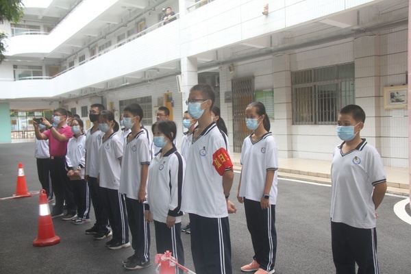 在学校、医院或餐饮业,诺如病毒是引起肠道腹泻聚集性疫情最常见的原因,冬春季是高发季节。常见症状是呕吐、腹泻,部分患者会有发烧和全身乏力表现。结合当前疫情防控形势,为防患于未然,2020年11月18日,小榄镇第一中学以2003班为示范,分三个场景举行了学生返校发烧及诺如病毒呕吐应急处置演练,学校各班派二名学生代表观摩了整个演练。