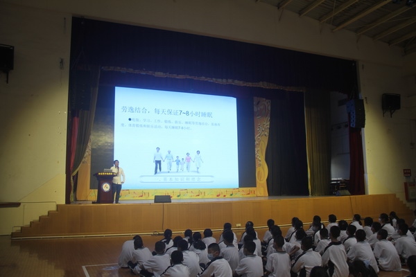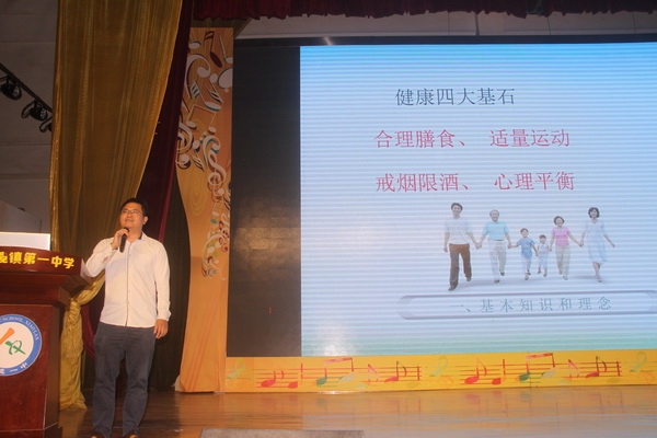 在讲座中,谭站长告诉同学们,合理膳食、适量运动、戒烟限酒、心理平衡是健康的四大基石。讲到献血助人利己,提倡无偿献血时,他给同学们介绍了有关献血的知识,告诉大家献血不但不影响健康,还能刺激骨髓的造血功能。谭站长还给同学们介绍了血压、体温、呼吸、脉搏等基本医疗知识。
