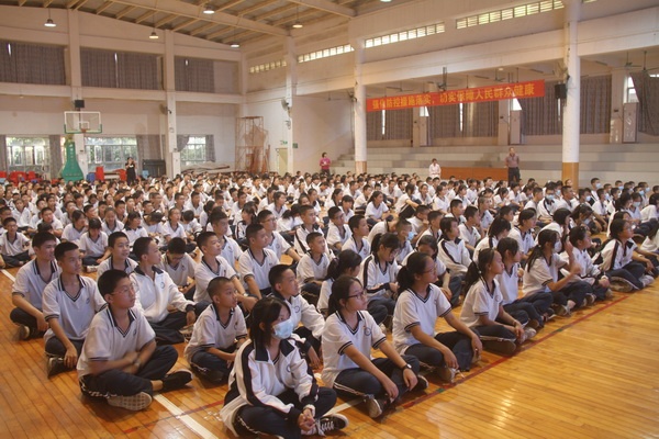 在开展创建广东省健康促进区宣传活动之际,2020年11月9日,小榄镇第一中学组织师生们在体育馆举行了“健康知识进万家暨健康素养巡讲活动”。活动由学校张玉良副主任主持,小榄镇社区卫生服务中心东区卫生站谭德添站长以“新时代文明实践系列活动”为主题,为师生们作关于健康素养的讲座,宣传相关的基本知识和理念。