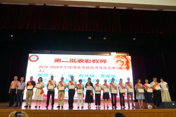 随后学校对获市、镇、校级优秀教师、优秀教育工作者、资深教育和德育工作者、优秀抗疫先锋、优秀科组长和备课组长、学校科研工作先进个人进行了表彰。与会领导为获奖教师代表颁发荣誉证书。获奖的教师们意气风发,脸上挂着灿烂的微笑陆续上台领奖。正是因为有了这样一群凝心聚力、精诚合作的团队,才有了侨中蒸蒸日上的今天和未来可期的明天。现场掌声不断,气氛高涨。