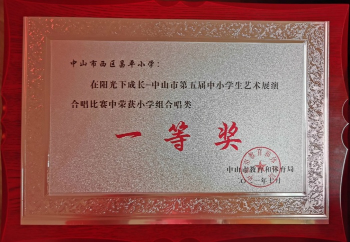 早上5:00,当整个城市的大多数人都还在睡梦中的时候,昌平小学的音乐老师们和参加比赛的40名合唱队员已经起床,做好一切准备,迎着朝阳,来到学校合唱室,开始比赛前的发声练习。7点45分,合唱队员们来到了比赛地点:中山纪念中学。这是昌平小学合唱团第四次在纪念中学参加中山市的合唱比赛了。比赛很快开始了,西区昌平小学的合唱队员们着装整齐,精神振奋,以出色的表演、深情的演唱,最终以90.50分荣获中山市第五届中小学生艺术展演——声乐专场比赛的一等奖。此奖项也是昌平小学合唱团第二次荣获市级合唱比赛一等奖的殊荣。