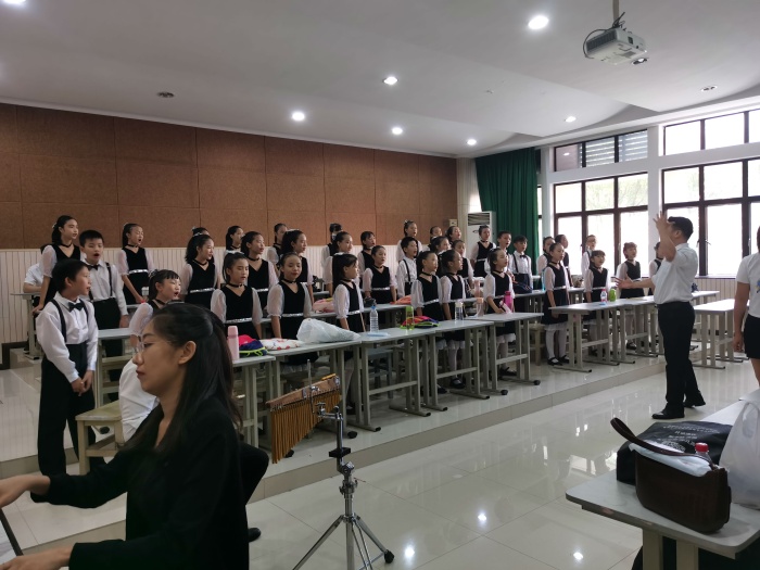 合唱是昌平小学的音乐特色项目,合唱团队员们在指挥张想谋老师、钢琴伴奏刘靖楠老师、艺术科组长李敏老师及陈诗婉老师的共同带领下,利用每周周一和周五下午晚托时间进行常规排练。一路走来,孩子们经历了不少辛酸,同时也创造了不少欢乐,大家从歌曲的音准、节奏、声音的统一、音乐作品的演绎上都付出了大量的时间和精力,克服了重重困难,付出了辛勤的汗水。