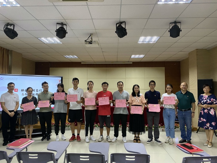 黄锦生副校长在会议上宣布了师徒结对的名单,并给师傅们颁发了聘书。接着,师徒们分批上台就座签订拜师结对协议书,签完后,徒弟们给师傅敬上一杯热茶,希望在师傅的带领下,早日站稳讲台,熟练掌握教育教学和科研的基本功以及学成为一个遵纪守法、诚实正直的人。喝下这杯幸福茶,师傅们笑容满面,纷纷给虚心好学的徒弟们点赞不已。