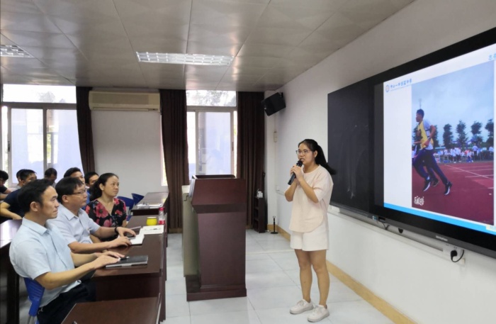 初二年级主任卓琼彩以“尊重、团结、融合”为关键词分享了原初一年级的集体故事,卓主任结合数据,向老师们深入地分析了这些美丽的数字背后的努力付出,也为其他年级提供了可借鉴的管理方法。