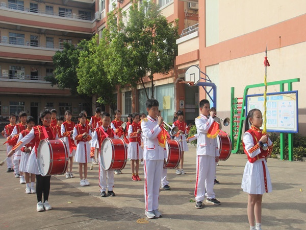 领导致辞后,开幕式正式开始。首先是鼓号队、彩旗先进行小“巡游”,然后就到班级方阵表演。各班方阵按照老师们设计的位置排列,迈着整整齐齐的步伐进入了全校一千多名师生的视线里。音乐响起,全校的目光瞬间齐刷刷地看向主席台。同学们跟着音乐的节拍,跳动着整齐划一的动作,挥舞着各自的青春。等到音乐停止,整个表演也就结束了。各班同学们又迅速地排成队列,迈着整齐的步伐离开了观众的视线。
