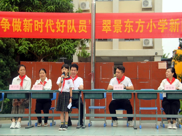 伴随着激昂的入场曲,队员们迈着整齐的步伐齐聚操场,新队员入队仪式拉开了帷幕,鲜红的队旗迎风飘扬,嘹亮的队歌响彻校园。