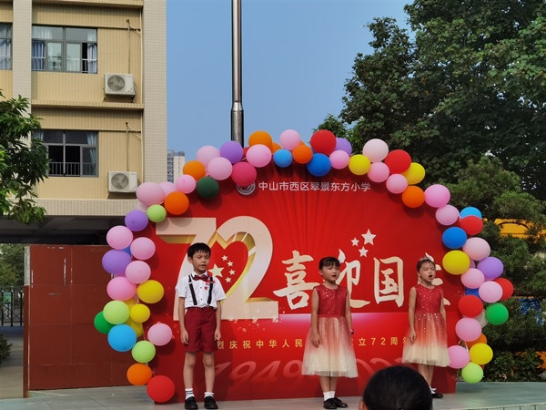全校少先队员齐唱《我和我的祖国》,并热情地挥舞手中鲜红的五星红旗,表达自己对祖国母亲的热爱,传递出莘莘学子的爱国主义精神。在少先队员们激情澎湃的歌声中,一面面鲜红的国旗随风飘动,仿佛在向革命先辈们致敬……