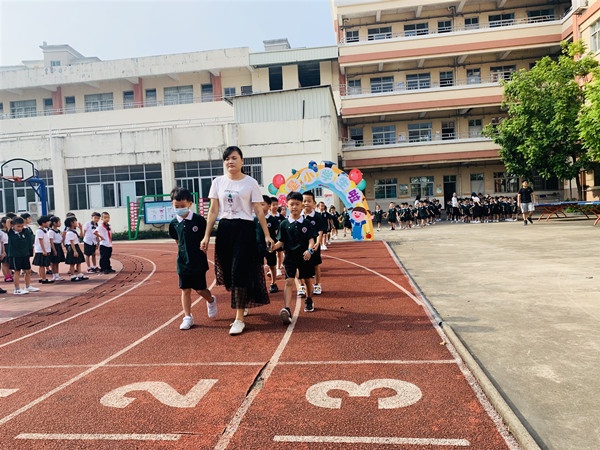 迈着轻盈的步伐,洋溢着灿烂的笑容,2-6年级学生集合完毕,一年级新生由行政、班主任和六年级学生能手牵手入场,入场完毕后宣布仪式正式开始。五星红旗在铿锵有力的国歌声中冉冉升起,动人心弦的校歌回荡在校园上空,翠景东方小学的开学典礼拉开了序幕。
