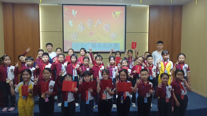 复赛阶段,分为好文朗诵和讲故事两个环节,选手们自然丰富的表情、清脆悦耳的声音,赢得评委们的一致好评。 从比赛中能感受到选手们对播音的热爱,虽然还很稚嫩,但是他们却尽全力展现着自己。通过精彩的较量,最终选出了15名播音员,成为了聚星红领巾广播站的一名小广播员。何主任以及钟老师为他们现场颁发聘书。