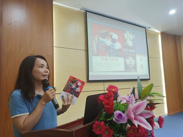 丁秀梅老师通过“钉子故事”阐述话语带来的伤害,运用生动的案例和对比练习,让老师们明晰非暴力沟通的四要素,即观察、表达感受、体会自身需求、区分请求与命令,强调“与他人沟通时,不要轻易妄下评论”。“生气”就如同一个附身符一样跟随人们左右,特别是面对正值青春期的孩子,一不留神儿就起火,有时会隐忍,有时隔一段时间后就爆炸一回……自己都不忍面对这样的自己。”怎样可以让自己不生气呢?肖志华老师向老师们推荐“愤怒之时后退两步、一日三省做好自我反思、规律练习”等方法,表示时刻保持快乐是抑制生气最好的方式。黄清老师以曾国藩先生小时候的“审鸡蛋案”导入,激发老师们的阅读兴趣,向老师们分享交友的标准。