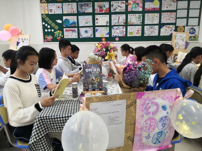 室内班级开展的读书活动也是精彩纷呈。同学们,时而静品细读,浸润书香;时而畅所欲言,大胆想象;时而小组交流,思维碰撞;时而侃侃而谈,兴致昂扬。